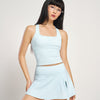 This set features a chic square neckline top with a longline length for added coverage and style. Paired with an elegant A-line skirt, complete with built-in shorts.