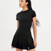 Bộ đồ được hoàn thiện với chiếc váy xếp ly, thiết kế với quần short liền trong để đảm bảo tính năng động và thoải mái.